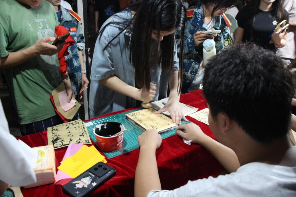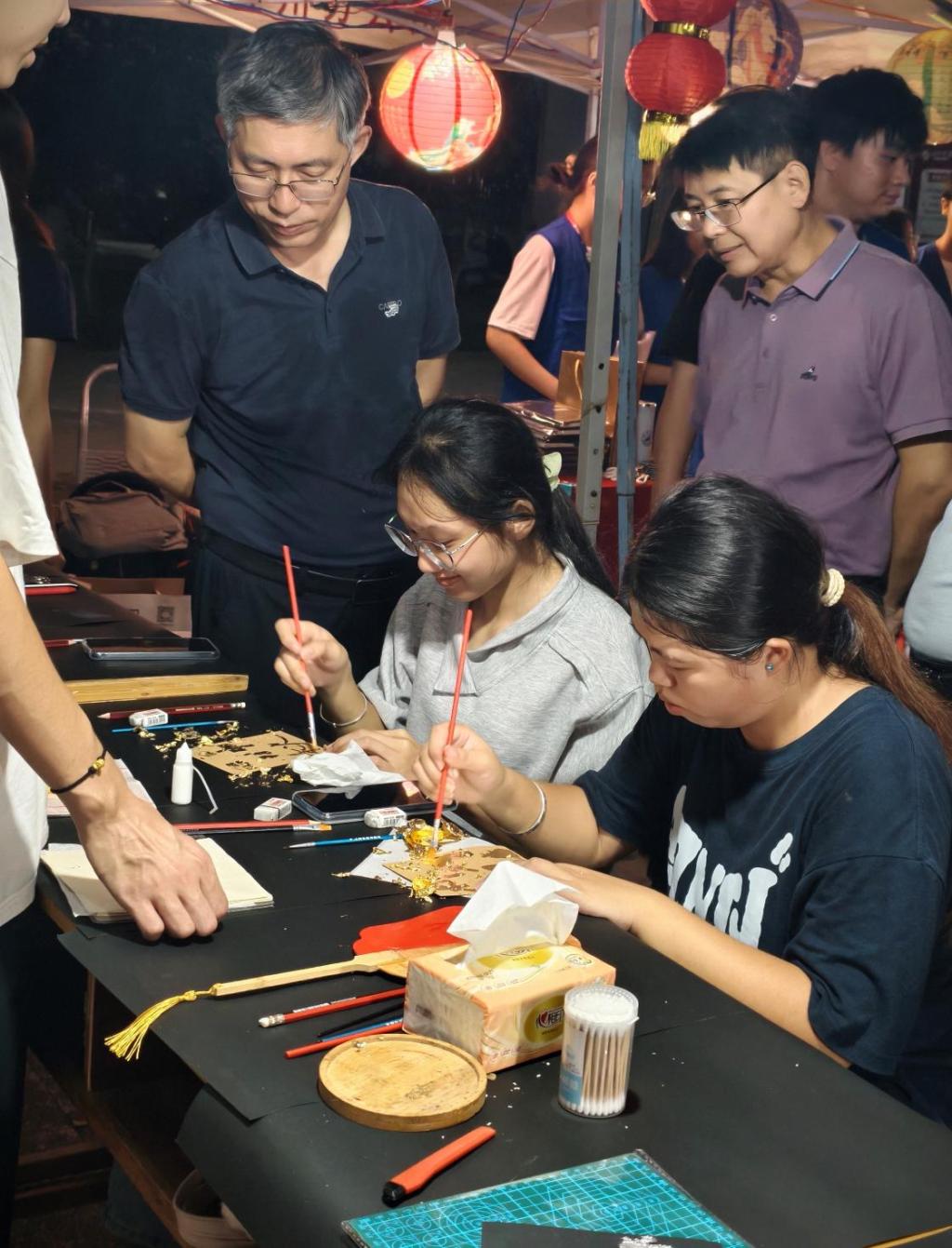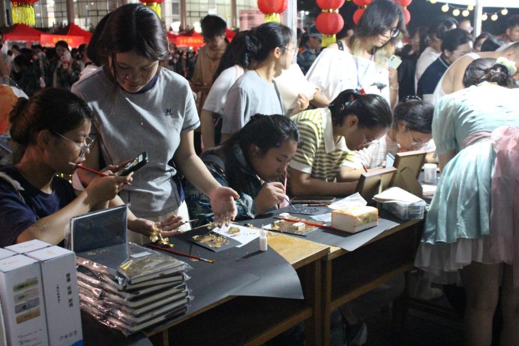 金秋送爽,双节同辉。为庆祝国庆,喜迎中秋,弘扬中华优秀传统文化,2025年9月27日晚,美术与设计学院易班学生工作站在逸夫楼广场成功举办了“以金箔,镌刻此刻团圆;为甲马,点睛明日华章”传统手工艺体验活动。活动将非遗技艺体验与节日文化内涵深度融合,吸引了众多师生踊跃参与,在校园内营造了欢乐祥和、富有文化气息的浓厚节日氛围。