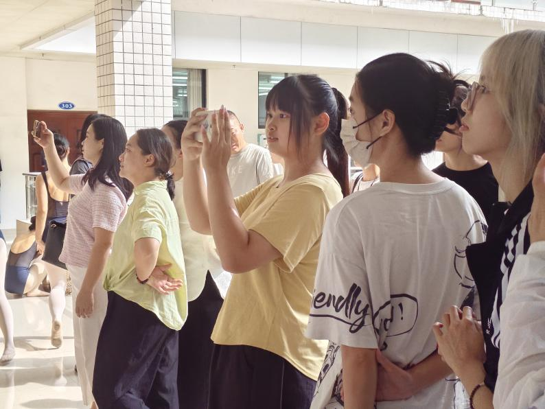 在参观环节中,卢艳玲向对方详细介绍服装与服饰设计实训室运行状况,带领大家参观了艺术楼展厅的学生成果作品展示,并深入课堂,进行观摩和交流互动。