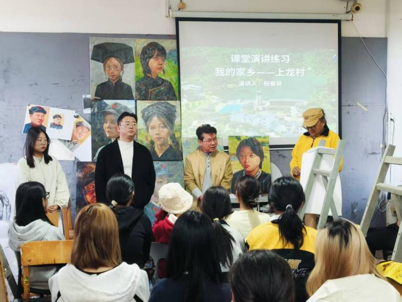 作为“强国行”支部,教职工第一党支部坚持把课程思政作为重要抓手,重视将思政元素融入专业课程,积极推动品牌课程建设。本次色彩头像课程由西南大学银龄教授刘增宪主讲,课程将历史认知、艺术创作与价值引领紧密结合。美设学院党委书记韦联华、副院长陶征魏、美术学系教师曾峰、黄丹、梁珍珍等参与课程指导,共同构建起富有深度的教学体系,引导学生深入理解“沉默的荣耀”的精神内涵,为本次总结交流会的顺利开展奠定了扎实基础。