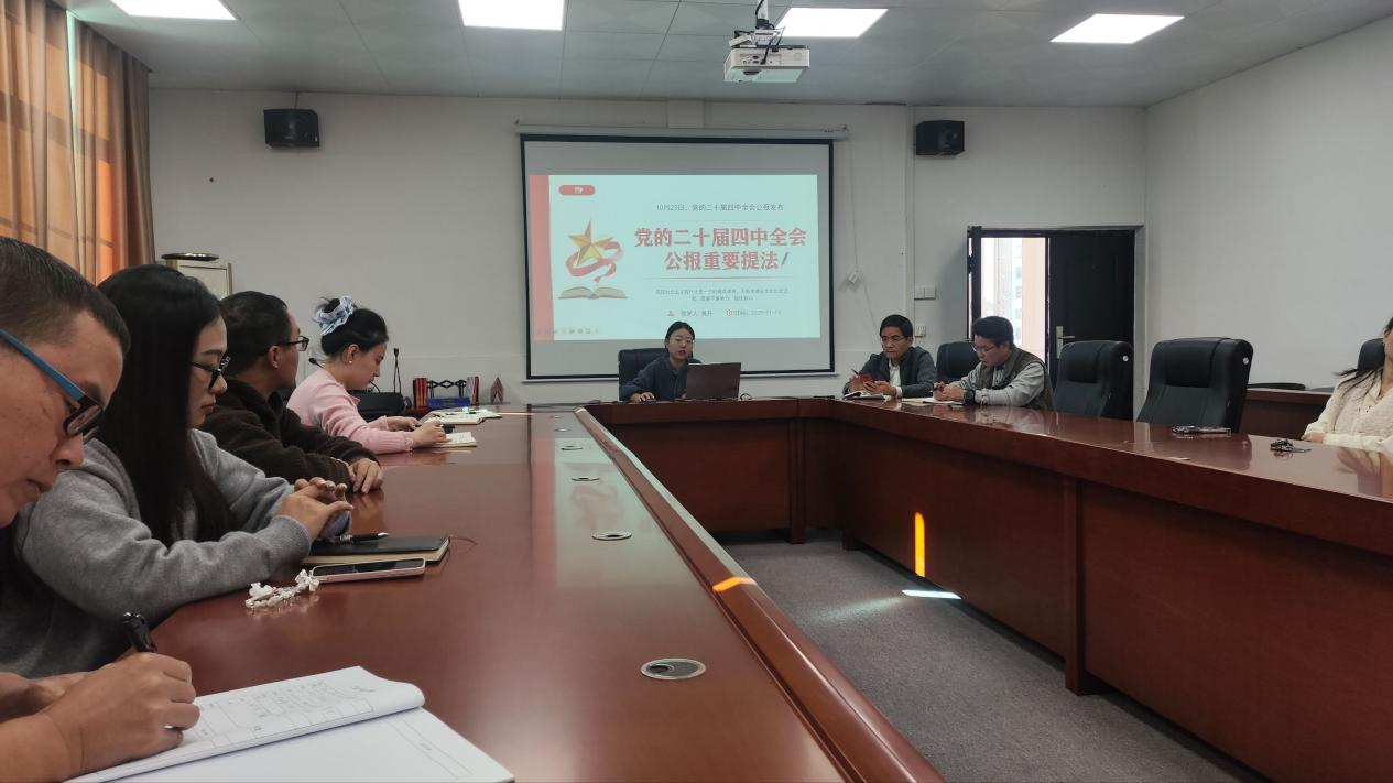 会议第一阶段,由支部组织委员黄丹同志组织大家学习党的二十届四中全会公报核心内容。重点学习“十五五”时期发展目标、“六个坚持”原则等新提法新部署:公报明确了“十五五”时期经济社会发展要以推动高质量发展为主题、以改革创新为根本动力、以满足人民日益增长的美好生活需要为根本目的,遵循坚持党的全面领导等六项原则;公报提出高质量发展取得显著成效等“十五五”时期主要目标,并部署了建设现代化产业体系、加快高水平科技自立自强、激发全民族文化创新创造活力等重要任务。会议第二阶段还学习了《习近平谈治国理政》第五卷的相关内容。