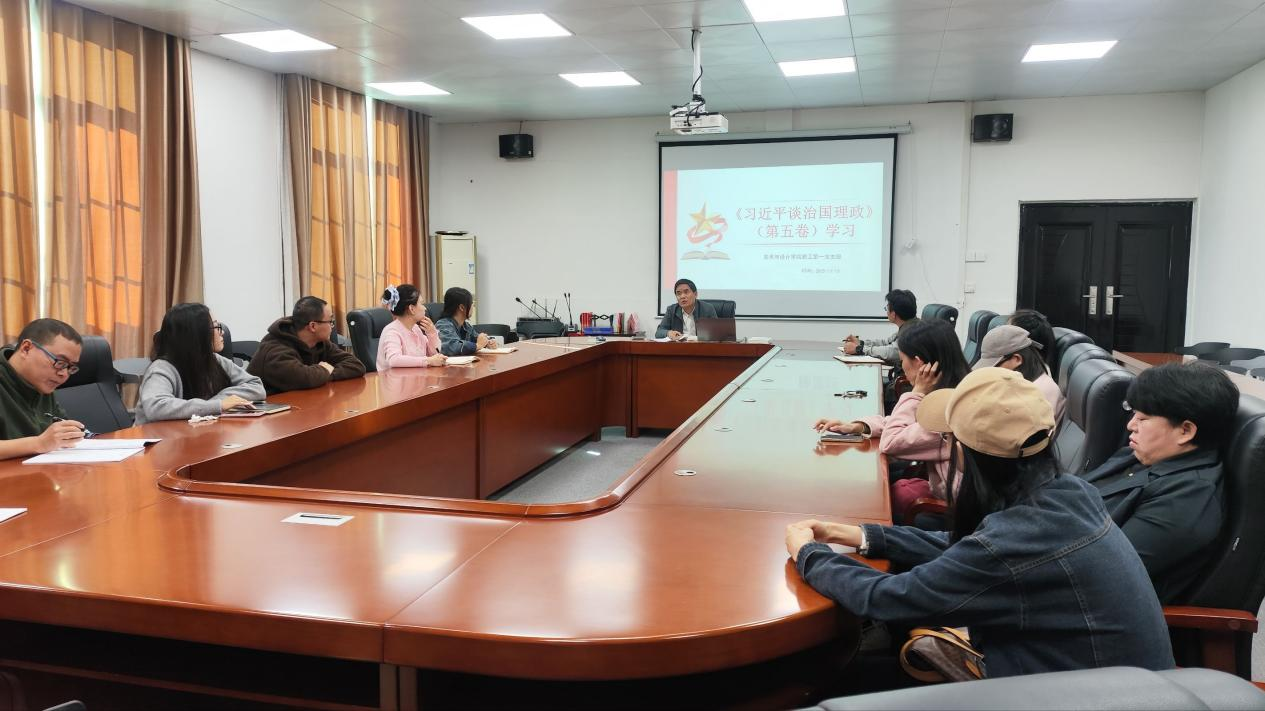 11月13日下午,美术与设计学院教工第一党支部在行政楼405召开会议,专题学习《习近平谈治国理政》第五卷和党的二十届四中全会公报。