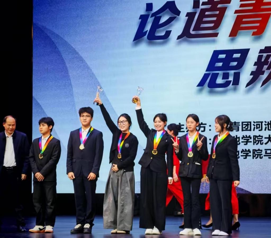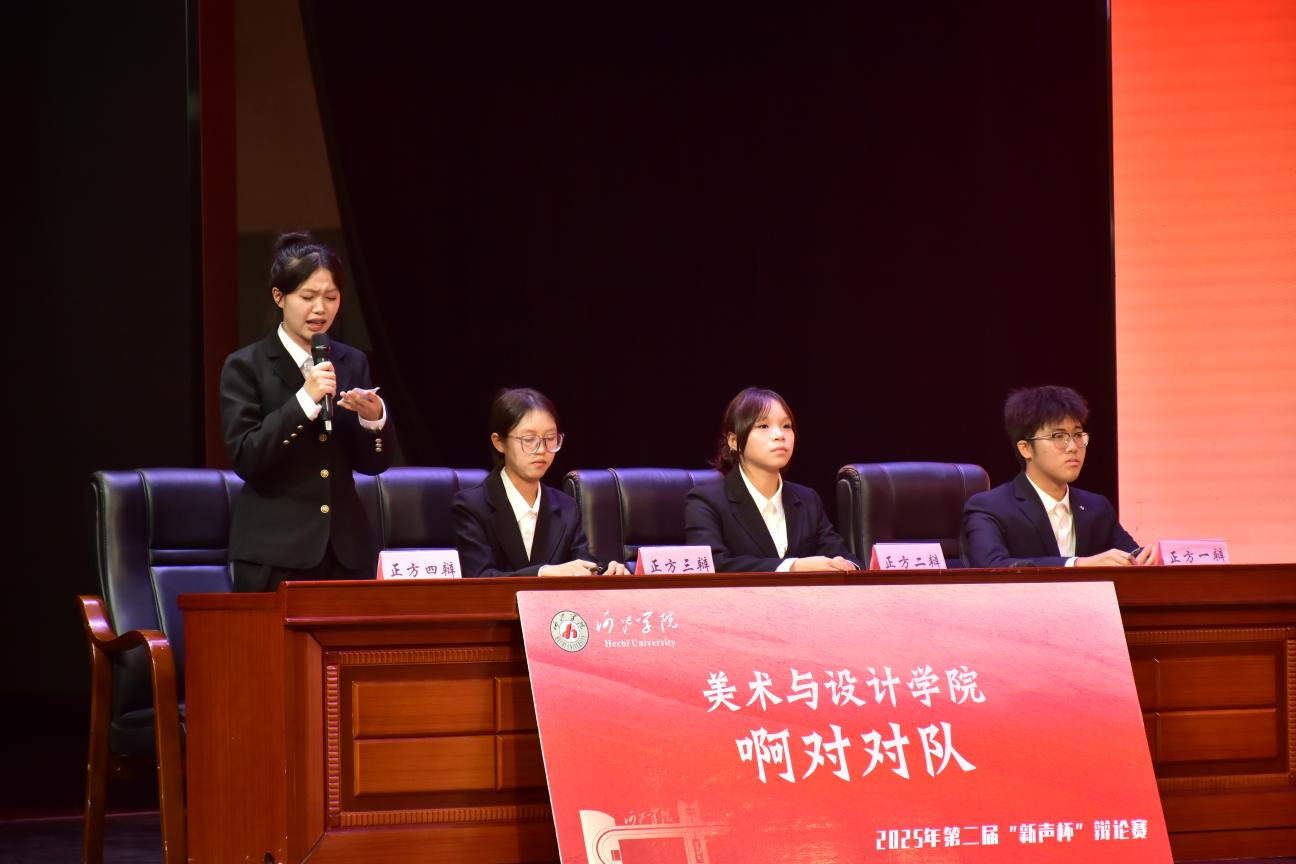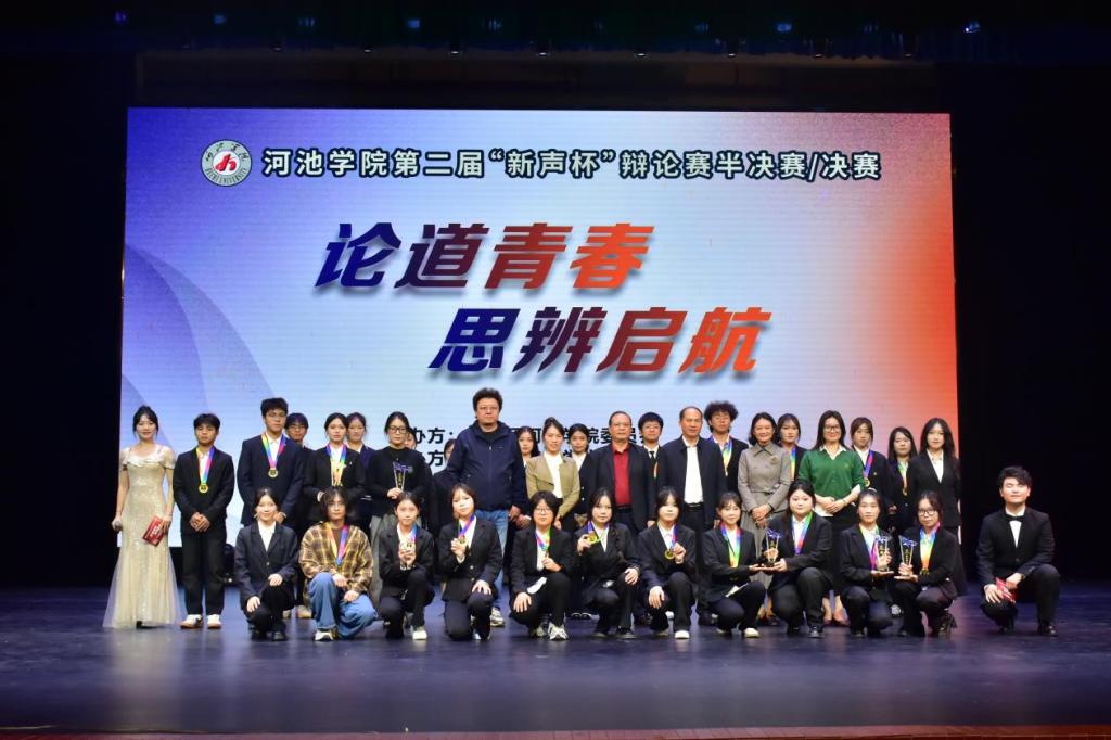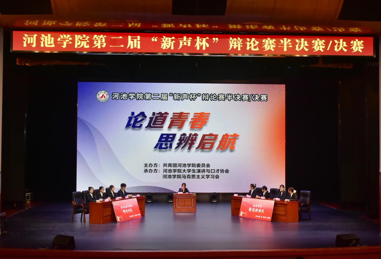 11月9日晚,河池学院第二届“新声杯”辩论赛半决赛、决赛在艺术楼表演厅举办。我院由2025级新生杨晓凯、覃嘉圆、李佳文、王晶、陶永明组成的辩论队伍“啊对对队”参加半决赛、决赛。